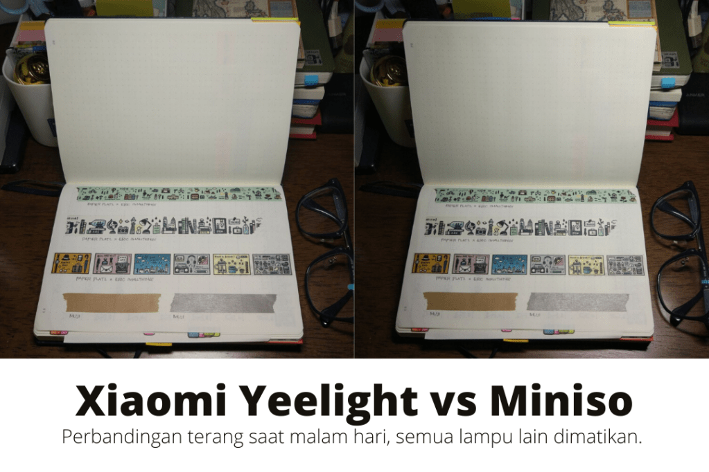 Terangnya Yeelight juga memuaskan. Dengan lampu Miniso, antara dipakai sambil nyolok ke sumber listrik atau menggunakan baterai internal, bedanya sangat nyata. Dengan Yeelight, nggak terlalu terasa. Turun hanya dari 330 lumen ke 260 lumen. Tetap terang. Dan, yang paling penting, fitur flicker-free bikin mata nggak sakit setelah pemakaian lumayan lama.