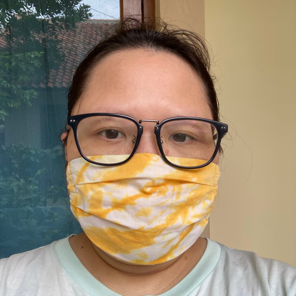 Masker ini, sama seperti masker kain Wisticy, adalah kain katun yang dilipat-lipat lalu dijahit. Bedanya, karet elastis earloop dijahit mati sehingga tidak bisa diganti. Toh, saya sangat menyukainya. Saat dipakai, masker ini bisa menutupi hidung hingga bawah dagu. Sangat lebar, sangat nyaman. Tersedia pula slot untuk filter tambahan.