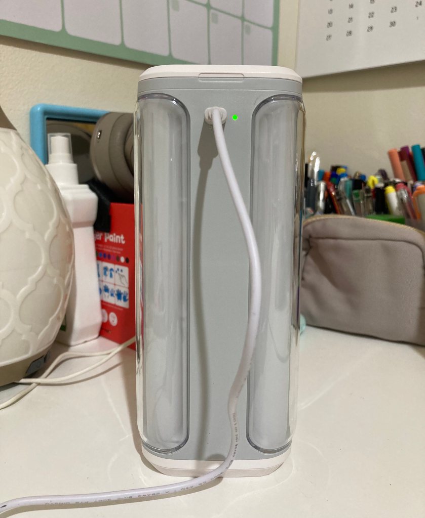 Yang menyenangkan, Surya SHL L8401 dilengkapi kabel USB untuk mengisi ulang baterai. Artinya, saya bisa pakai kabel USB apa pun yang ada di rumah.